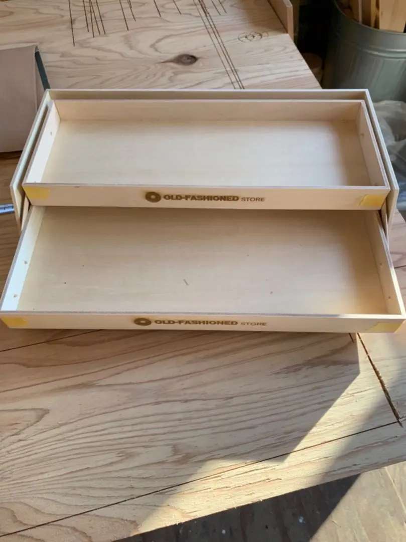 お客様のご要望は、なるべくシンプルに木材でスマートにしたいとのことでしたので、4mmベニヤで釘を使わず組み合わせ、本来ビス留めする可動部も木材にて製作しました。