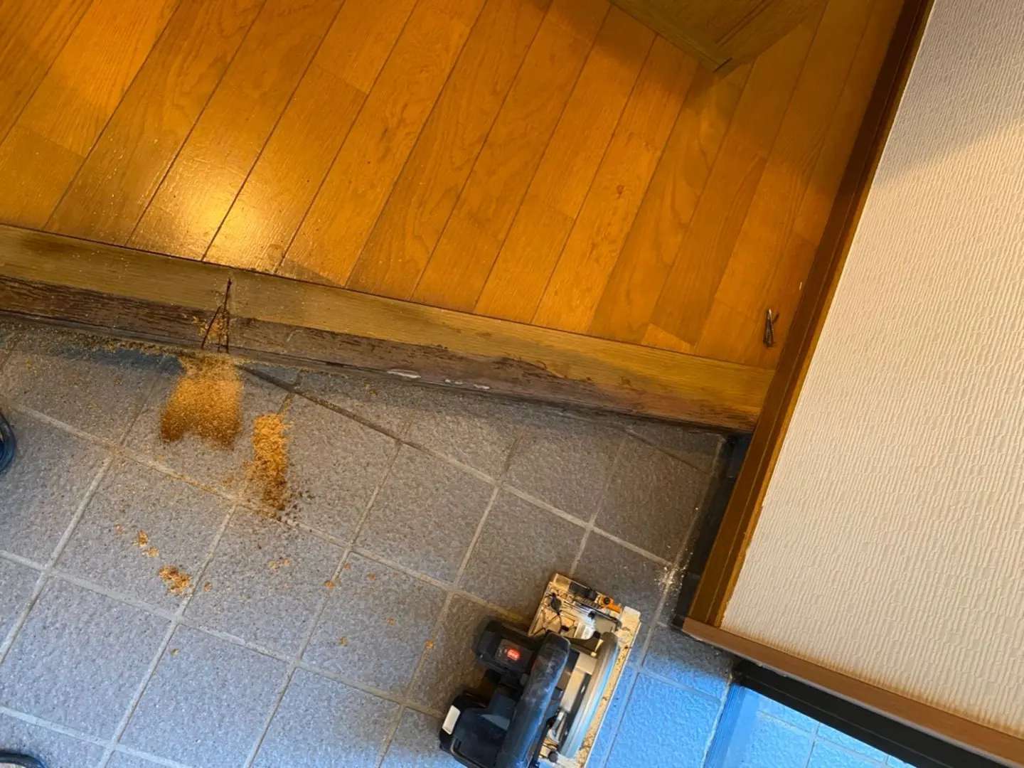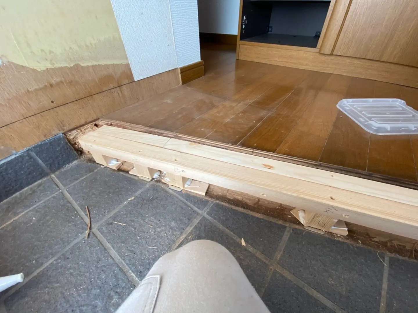 今回出来るだけ下地を床から浮かしカビが発生しにくい工夫をしリフォーム框で仕上げました。