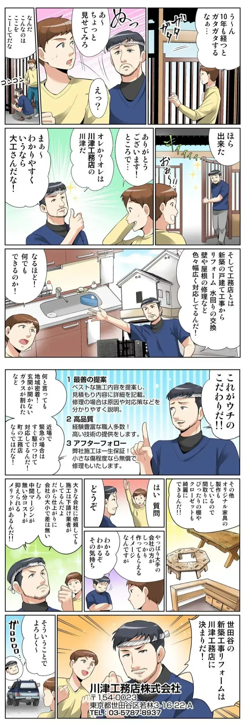 東京都世田谷区に拠点を構え、地域密着で対応しております。周辺地域での住まいのお困りごとをスピーディーに解決することが可能です。ちょっとした疑問、小さな不具合でも構いません。お気軽に何でもご相談ください。