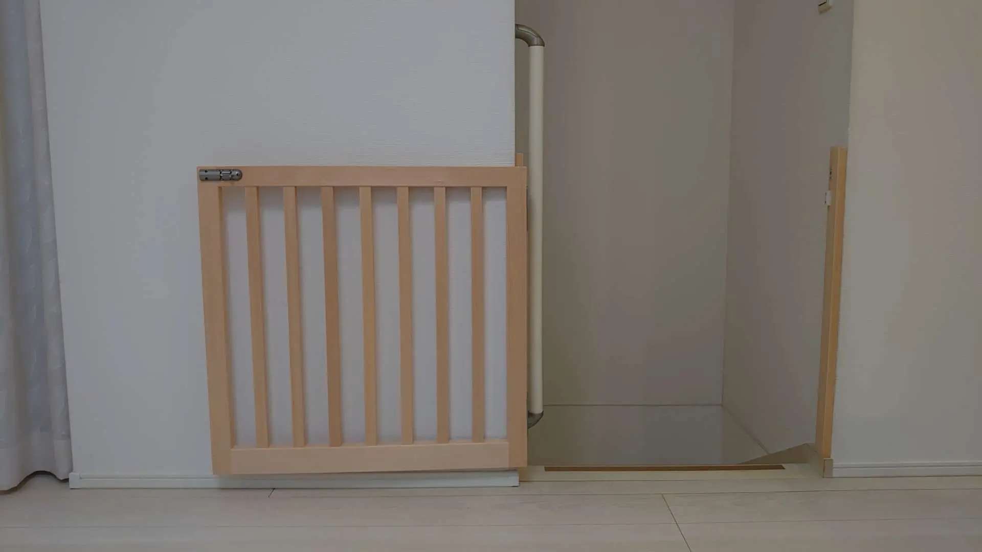 既製品のベビーゲートは両サイドを壁に突っ張って固定する物が多く、敷居部分に足をつまづいて転倒するのをオーナー様は心配されていました。